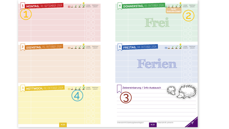 Zum Austausch zwischen Eltern, Lehrern und Hausaufgabenbetreuung gibt es pro Woche einen Kommunikationsbereich auf der unteren rechten Seite.